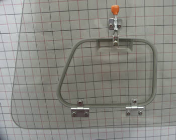 Pilot Vent Window assembly shown (from outside), Door side is similar | Typical Latch for new Approval |